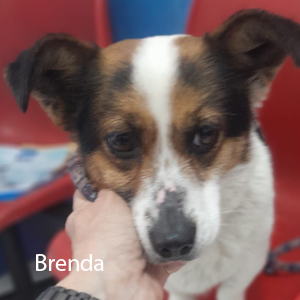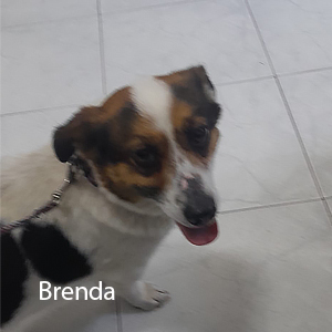 Brenda faceva parte di un gruppo di randagi inavvicinabili. Con tanta pazienza mettendo cibi ed acqua sono riusciti ad avvicinarla. Nelle settimane successive, una volta messa in sicurezza, si è dimostrata essere docile ed affettuosa e anche molto socievole coi suoi simili. Purtroppo non ama i gatti