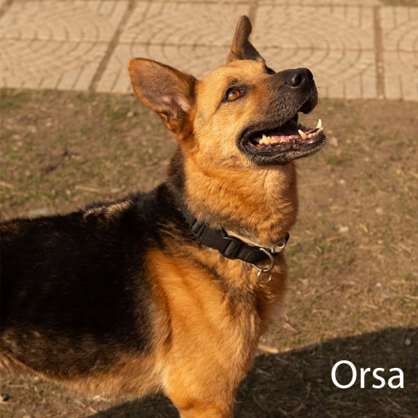 Orsa è ubbidiente e risponde molto bene ai comandi. In ambiente urbano ha ancora un po’ di timore, ma al guinzaglio, se guidata con calma, va perfettamente anche se non ama le lunghe passeggiate, mentre adora il contatto umano e le attenzioni.
