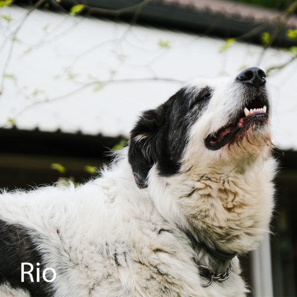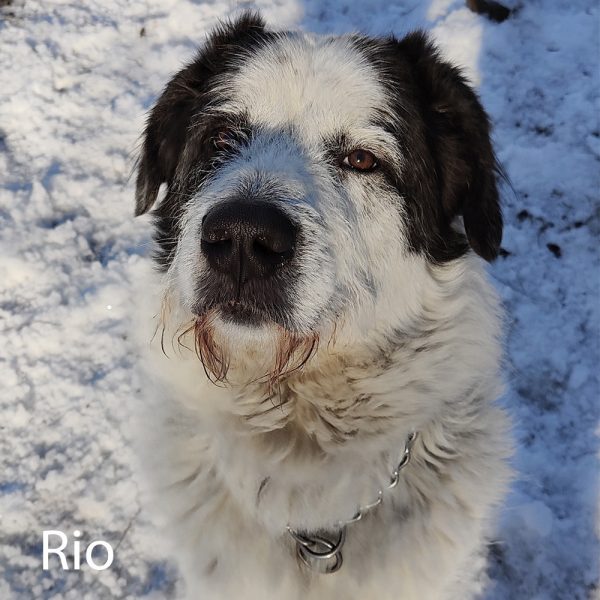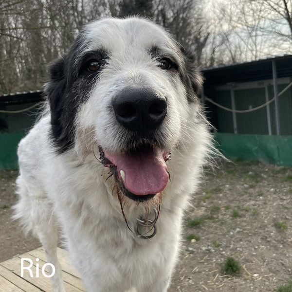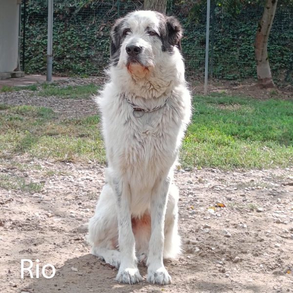 Rio è un incrocio maremmano, taglia grande. Viene dal Sud, dove è stato trovato con tutti i suoi fratellini.